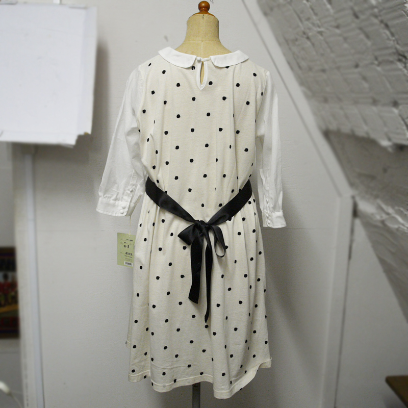 アイボリーのニットに黒い刺繍糸でドットを描いてあります。