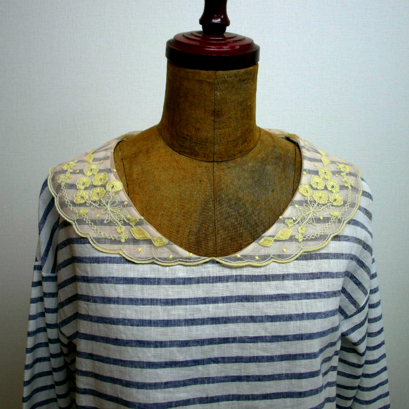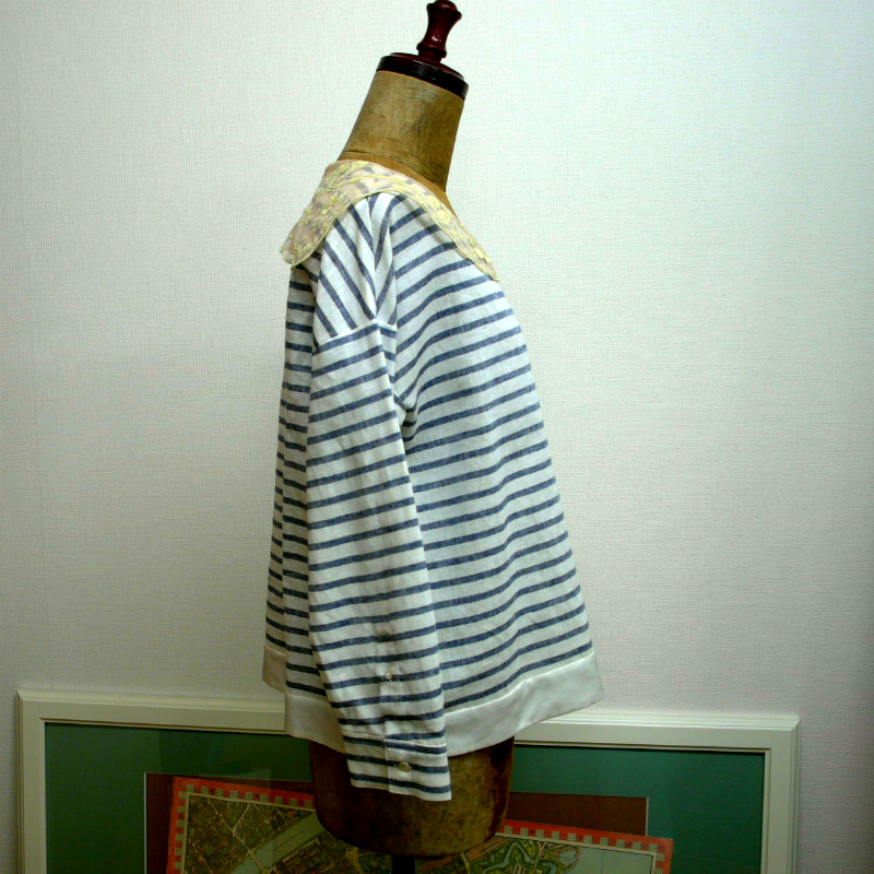 遠目に見るとレース襟付きの長袖ボーダーTに見えますが、