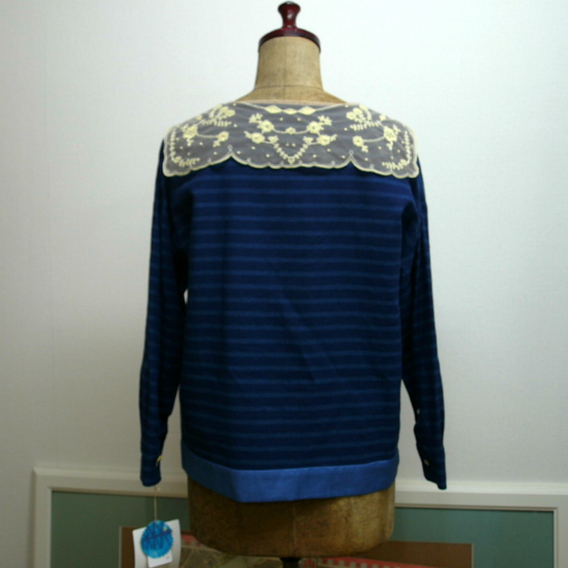 遠目に見るとレース襟付きの長袖ボーダーTに見えますが、