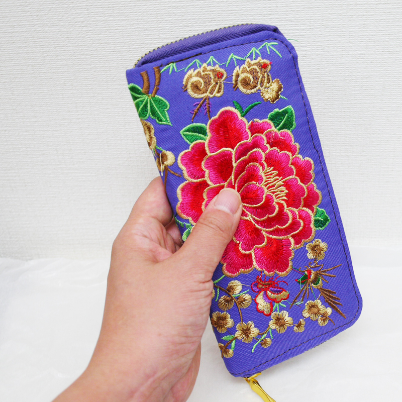 明るいすみれ色にピンクの牡丹の花が魅惑的。