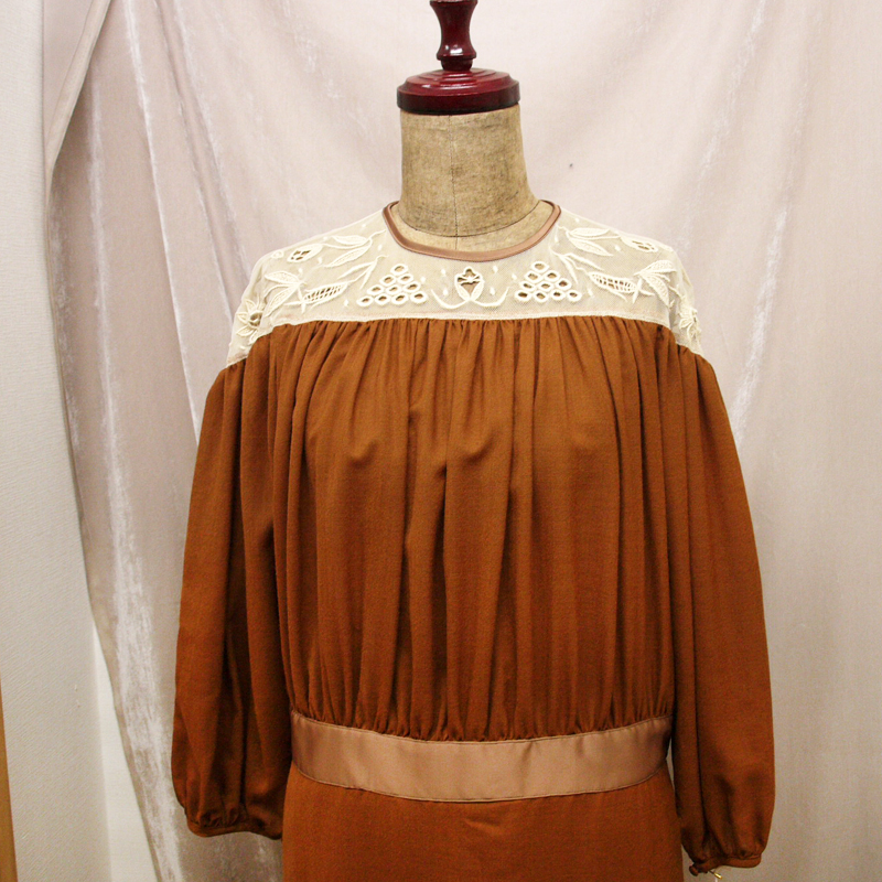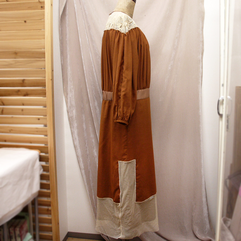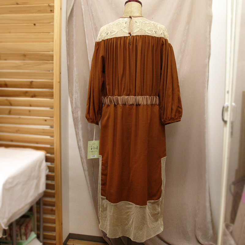 nesessaire ネセセア ウールガーゼ チュールエンブロイダリー ドレス ブラウン